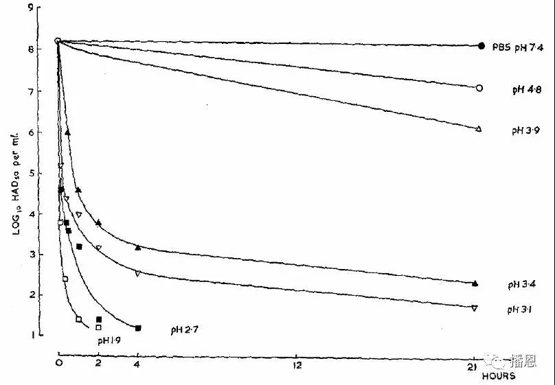 早在1967年,Plowright和Parker就進(jìn)行了pH對非洲豬瘟病毒活力影響的研究。從圖5可以看出,當(dāng)pH下降到4.0以下時,非洲豬瘟病毒的活力開始大幅下降。因此得到的啟示是:可以通過降低“二師兄”的飲水pH4.0以下,來降低“二師兄”被非洲豬瘟病毒感染的機率。
