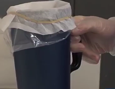 (4)準備采精杯。準備一個新的集精袋,貼壁套在干凈的采精杯內。使用精液過濾紙(或無菌紗布)覆蓋在采精杯上,用一條新的橡皮筋固定。