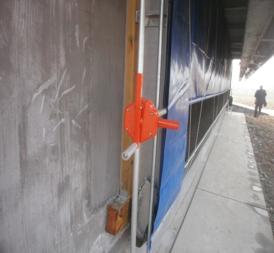 (1)檢查側(cè)墻進(jìn)氣口 蛋雞舍冬季通風(fēng)量一定時(shí),側(cè)墻進(jìn)風(fēng)小窗的位置對舍內(nèi)氣流的分布等產(chǎn)生重要影響。側(cè)墻進(jìn)風(fēng)口位置設(shè)置不合理,蛋雞舍內(nèi)容易出現(xiàn)通風(fēng)死角;側(cè)墻進(jìn)風(fēng)小窗位置合理,舍外冷空氣順著進(jìn)氣口進(jìn)入舍內(nèi)后,才能與舍內(nèi)熱空氣充分混合,避免“賊風(fēng)”形成。