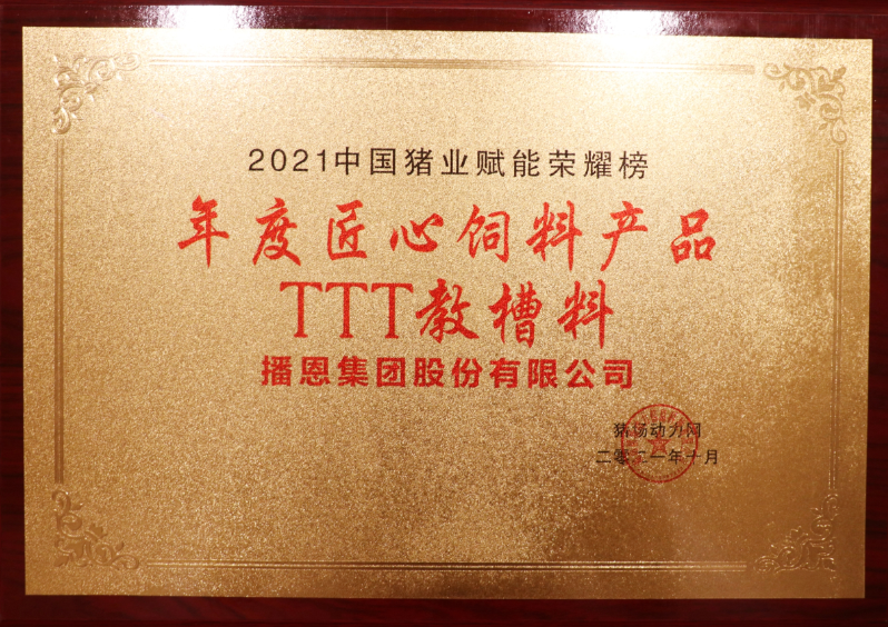 匠心產(chǎn)品的打造是一個漫長的過程,播恩始終不忘初心的質(zhì)量堅守,精益求精的匠心鍛造,推行高品質(zhì)產(chǎn)品和服務(wù)。此次榮膺“2021年度匠心飼料產(chǎn)品”獎項,不僅反映了行業(yè)與廣大客戶對產(chǎn)品價值的認可,也是公司持續(xù)專注技術(shù)研發(fā)、提升產(chǎn)品價值的結(jié)果。這也是繼2017年播恩TTT教槽料首次獲評“教保類匠心產(chǎn)品”后,再次獲得此項殊榮。