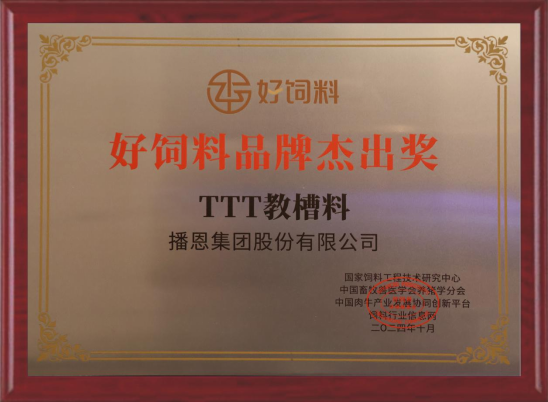 播恩集團(tuán)TTT教槽料榮獲2024“好飼料品牌·杰出獎”
