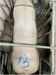 其次,不少豬場采用“目測+觸摸“體況評分法和卡尺評估法,存在很大的系統(tǒng)性誤差。圖(2)的兩頭母豬,從目測和觸摸感受的結果,肯定是左邊的母豬比右邊的母豬肥胖。但是,同一個人背膘(B超,P2點,下同)測定的結果如圖(3)所顯示的左邊的母豬背膘值13mm,比右邊的母豬的15mm,還少2mm。又如圖(4)和圖(5)兩頭母豬,從目測和觸摸感受的結果是相差無幾,但如圖(6)與圖(4)屬同一頭母豬,所顯示的母豬背膘值13mm,比圖(7)與圖(5)屬同一頭母豬,所顯示的背膘22mm,竟然薄了9mm。另外,夏季和冬季,因環(huán)境溫度差異大,人對母豬體況的感知的差異更大,可見“目測+觸摸“體況評分法的系統(tǒng)性誤差之大,不能高效的指導調(diào)控母豬飼料的飼喂量,本該加料的卻不加或加的不夠甚至減少,本該減料的不減或減少不夠甚至增加,導致飼料的浪費以及母豬繁殖性能的下降乃至降低母豬的使用壽命。