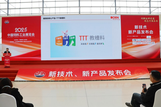 曾慶昌總監(jiān)于2025大會新技術、新產品發(fā)布會上對外發(fā)布TTT2.0教槽料及母仔一體化營養(yǎng)